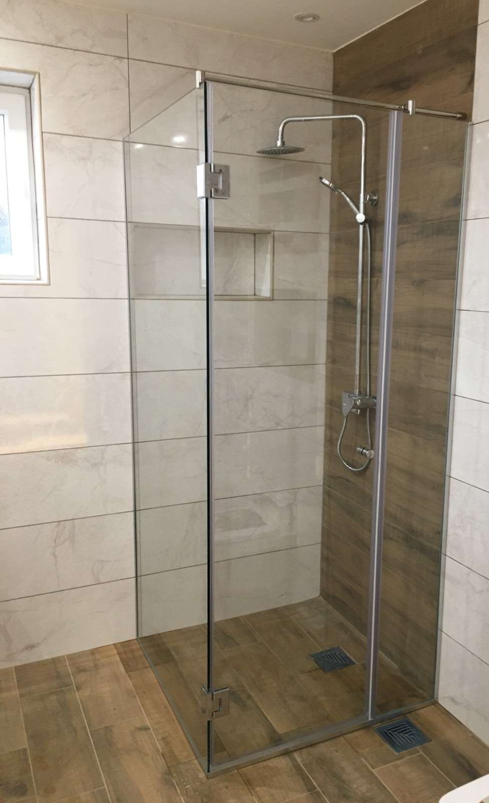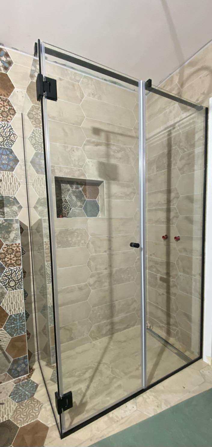 Pivot tuš kabina se radi na šarke, a vrata im se otvaraju na spolja ukoliko prostor to dozvoljava. Kada je prostor veći, rade se kabine sa vratima, dovratnikom i bočnim fiksom, dok se za manji prostor rade kabine sa vratima i bočnim fiksom. Koristi se kaljeno staklo 8mm i kvalitetan prohromski okov.
